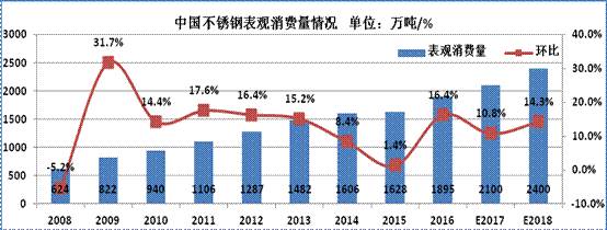 2018年預計茄子在线视频APP下遊行業消費環比增長200萬噸(與2017年基本一致),另外冷軋產能集中投產增加前工序熱軋原料庫存儲備50萬噸, 2018年上期所茄子在线视频APP期貨將上馬,交易所庫存蓄水池的建設50萬噸,故預計2018年茄子在线视频APP表觀消費量增加300萬噸至2400萬噸。
