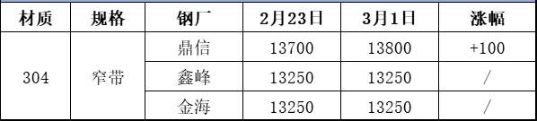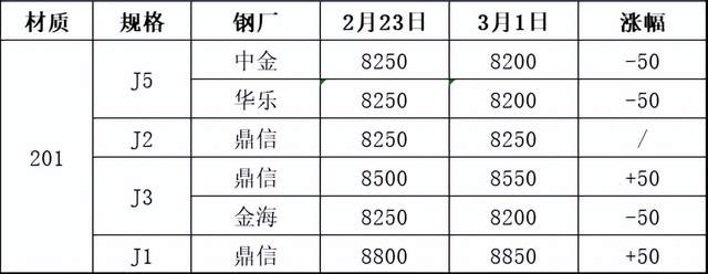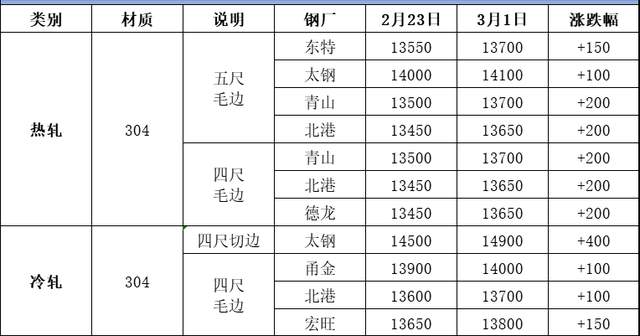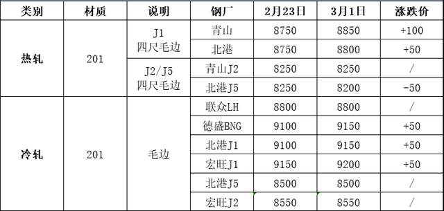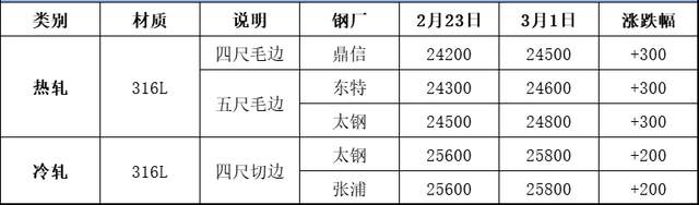 市場報價方麵:部分201材料優惠20~50元;部分304材料下跌50~100元;316L及400係材料維持相對穩價表現。