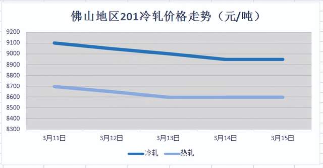 本周茄子在线视频APP市場行情弱勢走跌,年後市場整體消費水平有限疊加主流鋼廠期貨盤價跌價影響,現貨價格承壓下行。加上期鎳不振影響茄子在线视频APP期貨,拖累現貨市場行情,截止今日佛山市場宏旺304冷軋跌至13300元/噸毛基,佛山地區冷軋壘庫情況嚴重,價格低於無錫市場100元左右。