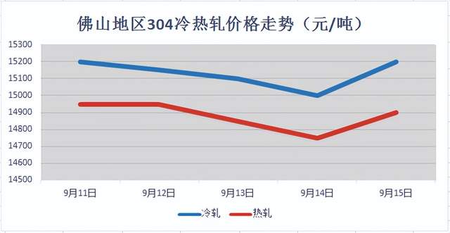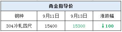 304冷軋較周一持平;熱軋較周一跌50元/噸。